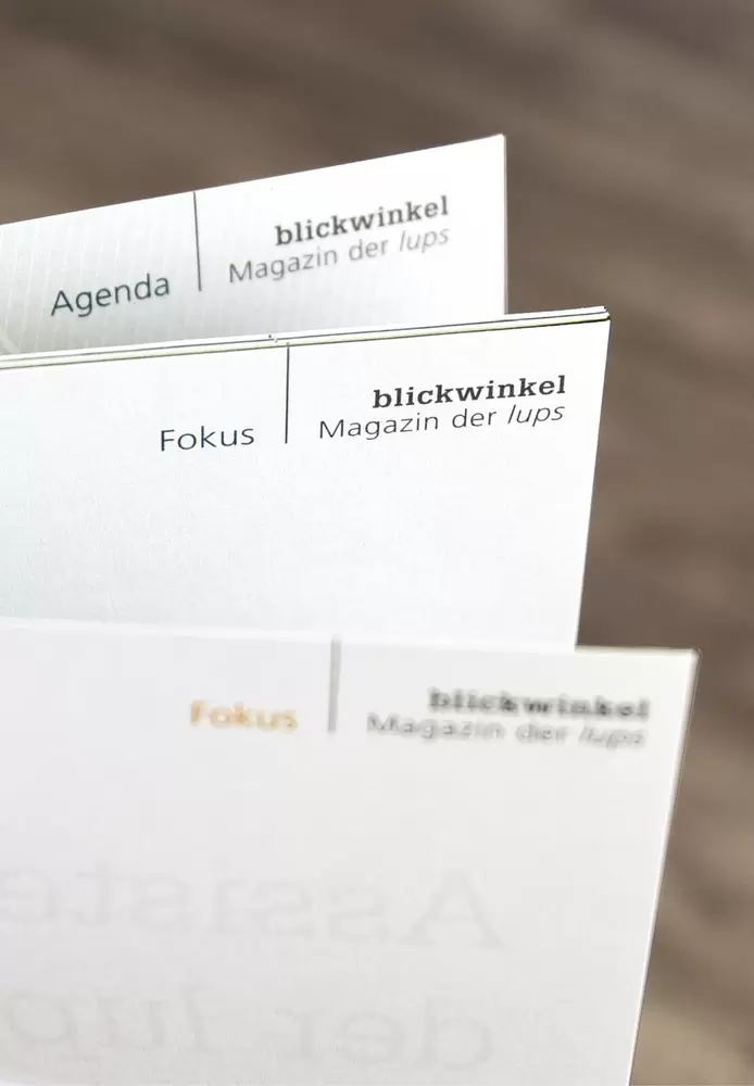 Das Magazin «Blickwinkel» erscheint zweimal jährlich und widmet sich aktuellen Themen und Projekten der Luzerner Psychiatrie. Es richtet sich an Fachpersonen, Betroffene und Interessierte.