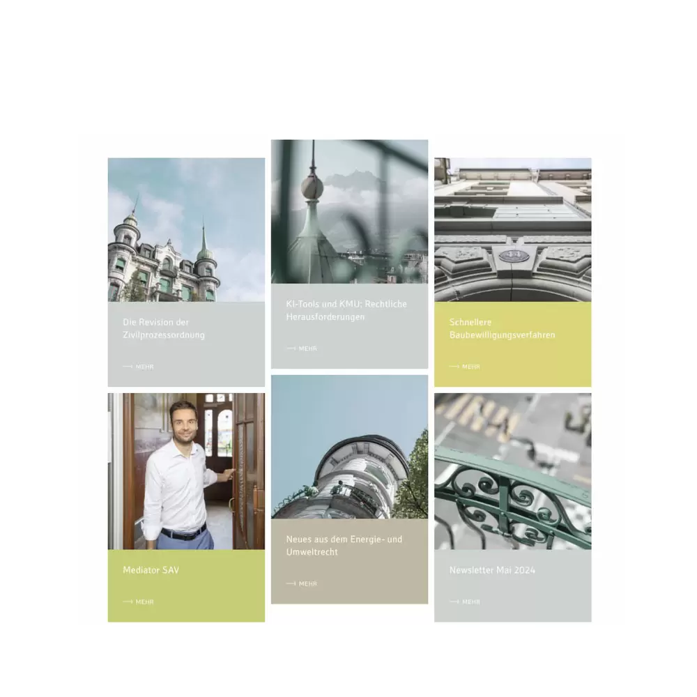 Die Kanzlei befindet sich in einem altehrwürdigen Gebäude mitten in der Stadt Luzern. Es wurde zu einem wichtigen Bestandteil des neuen Corporate Designs und fotografisch in Szene gesetzt.